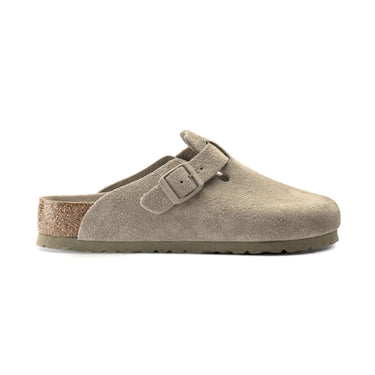 Birkenstock Boston Velourleder Weichbett Faded Khaki schmale Weite