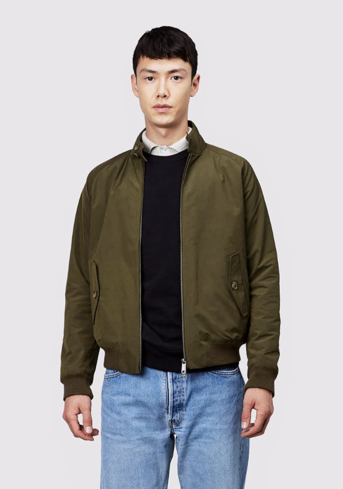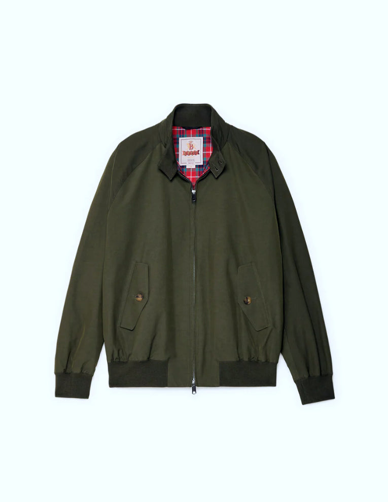 Die typische Harrington Jacke: der G9 Baracuta. Im Laufe der Jahre hat sich dieses Kleidungsstück einen Namen gemacht und wurde wegen seiner Vielseitigkeit und seines klassischen, zeitlosen Stils beliebt. Von einigen der bemerkenswertesten Männer der jüngeren Geschichte getragen und geliebt, ist es eine wahre Stilikone. Hergestellt aus wasserabweisender Baumwolle / Polyester mit einem atmungsaktiven Fraser Tartan Futter aus Baumwolle / Polyester Coolmax®. Klassischer Baracuta-Kragen mit zwei Knöpfen und Reißverschluss. Front-Klappentaschen mit Knopf und "Regenschirm-inspiriertem" Rückenschlitz, der Regen weglaufen lässt. Feinripp-Bündchen, Bund und Innenkragen.