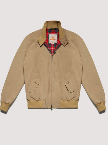 Die typische Harrington Jacke: der G9 Baracuta. Im Laufe der Jahre hat sich dieses Kleidungsstück einen Namen gemacht und wurde wegen seiner Vielseitigkeit und seines klassischen, zeitlosen Stils beliebt. Von einigen der bemerkenswertesten Männer der jüngeren Geschichte getragen und geliebt, ist es eine wahre Stilikone. Hergestellt aus wasserabweisender Baumwolle / Polyester mit einem atmungsaktiven Fraser Tartan Futter aus Baumwolle / Polyester Coolmax®. Klassischer Baracuta-Kragen mit zwei Knöpfen und Reißverschluss. Front-Klappentaschen mit Knopf und "Regenschirm-inspiriertem" Rückenschlitz, der Regen weglaufen lässt. Feinripp-Bündchen, Bund und Innenkragen.