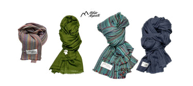 The upcycled cashmere scarves and blankets are made by older people in Nepal who unfortunately cannot read or write. Despite their advanced age, they continue to earn their own living by weaving the scarves and blankets. The scarves and blankets are made in elaborate handcraft from cashmere using unused pattern pieces and leftover production scraps on old wooden looms.
