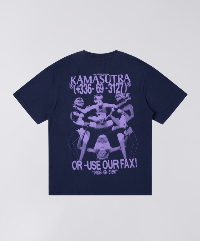 The EDWIN Kamasutra T-Shirt features striking front and back prints combined with comfortable wear. Made from soft 160g/m² single jersey fabric (100% cotton), it offers an oversized fit for a modern silhouette. Finished with a ribbed collar, this t-shirt delivers bold style with ease.
