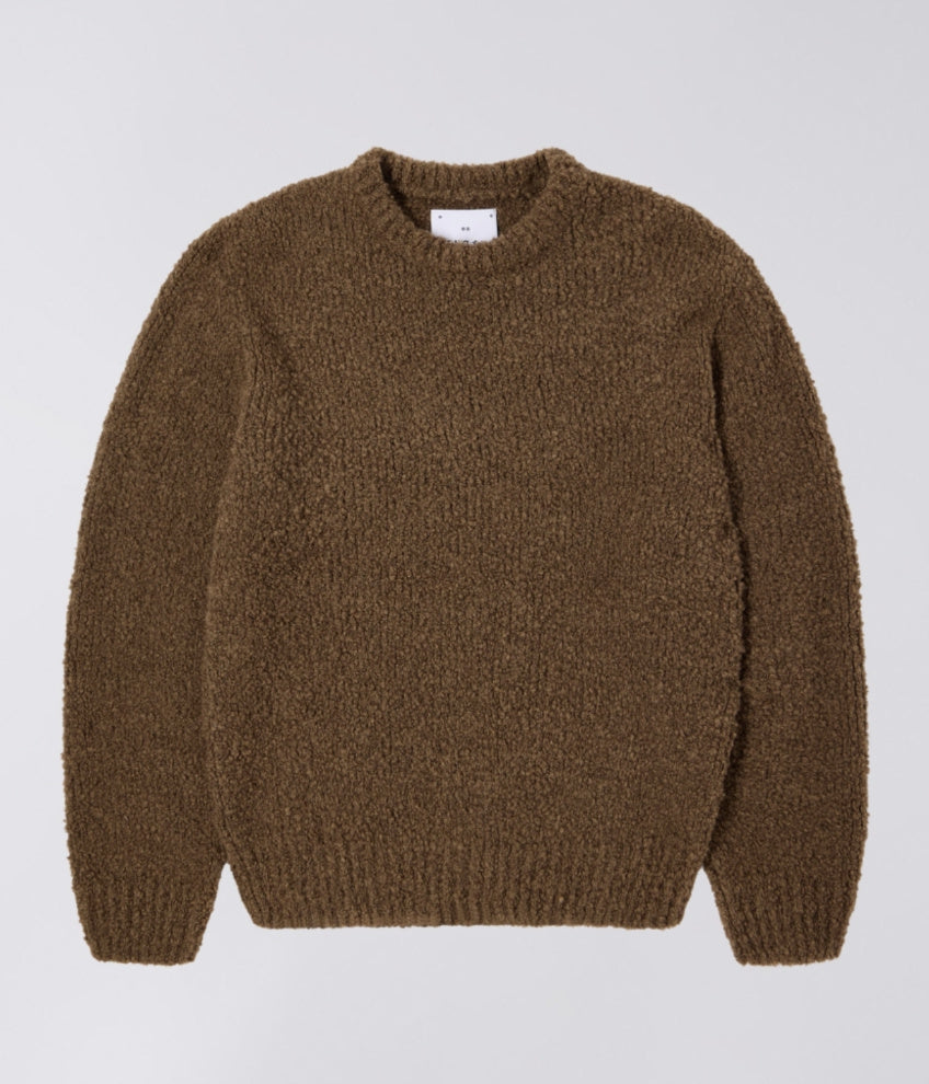 The EDWIN Dun Textured Sweater is a boxy-fit knit sweater with EDWIN label embroidered on the side. The sweater is made from a mix of Wool, Acrylic and Recycled Polyester.