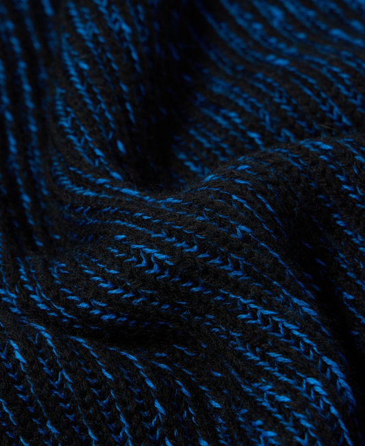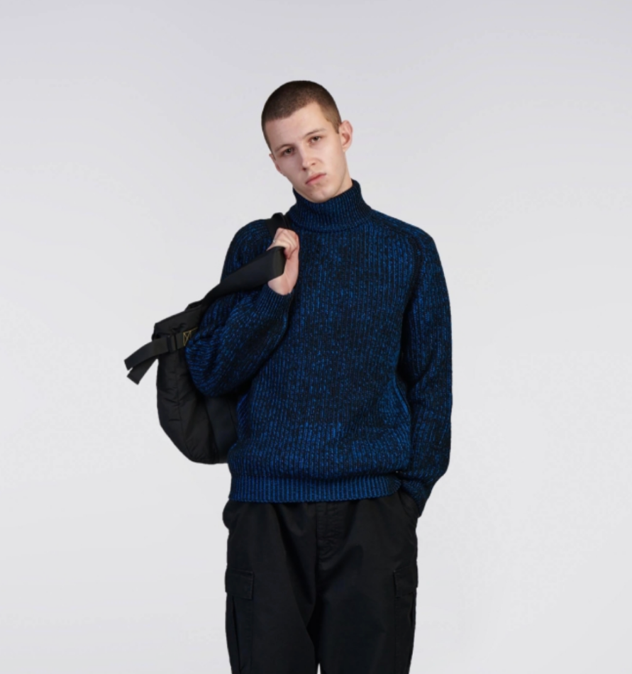 The EDWIN Roni High Collar Sweater is an oversized knit pullover that combines warmth and structure. Crafted from a heavyweight blend of 50% merino wool and 50% acrylic, it features a high collar and fully fashioned cuffs for a clean, high-quality silhouette. Its dense knit construction makes it ideal for winter, and it comes in a black and blue color combination that blends comfort with thoughtful design.